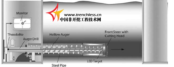 多年來,微型隧道法已作為一種大直徑管道的非開挖施工技術在世界范圍內得到了應用。而這種技術在小直徑管道鋪設中顯的成本較高,所以激光導向螺旋鉆進作為一種簡單、便利的方法(也被稱為先導式微型隧道法)在過去15 年中得到了發展。先導式微型隧道法,由于其施工效率高,被公認為小直徑排水管道非開挖施工中最先進的方法。先導式微型隧道法一般由二到三個步驟組成,最后一步是頂入需要鋪設的管道。從技術上看,主要的限制是巖土體必須松散適于切入,因為在第一步將先導管擠入地層中是在沒有任何自由面的情況下進行的。這就是為什么一般的土層導向鉆進技術不能用在致密(標貫值>35)地層的原因,巖層中明顯更是行不通的。