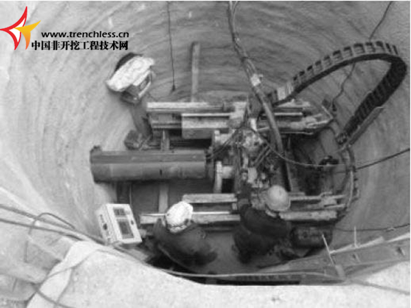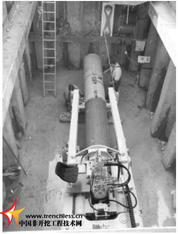BM500 在直徑3.2 米的圓形出發坑中頂進406mm 的臨時套管。在空心螺旋鉆桿的幫助下,利用激光導向系統通過光路進行導航,鉆進過程中幾乎沒有偏離管道中心線和坡度。在完成臨時套管安裝后,臨時套管在陶土管的作用下被推出。