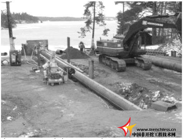 來自瑞典的BAB Rortryckning 公司需要越過95m 的距離來頂進609mm 鋼管,這次頂進是鋪設壓力管線的一部分,從一個周邊交通繁忙的湖出發,在一個泵站結束。工作管是在鐵套管中管徑為500mmPE 管。之前的非導向頂進有太大的偏差,這就是為什么尋找一種導向鉆進方法的原因。
