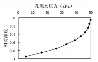 穩(wěn)定狀態(tài)時(shí),試驗(yàn)得到孔隙水壓力沿相對(duì)深度 的分布如圖1 所示。